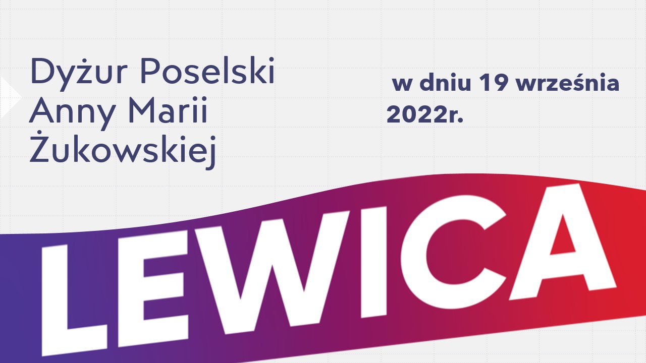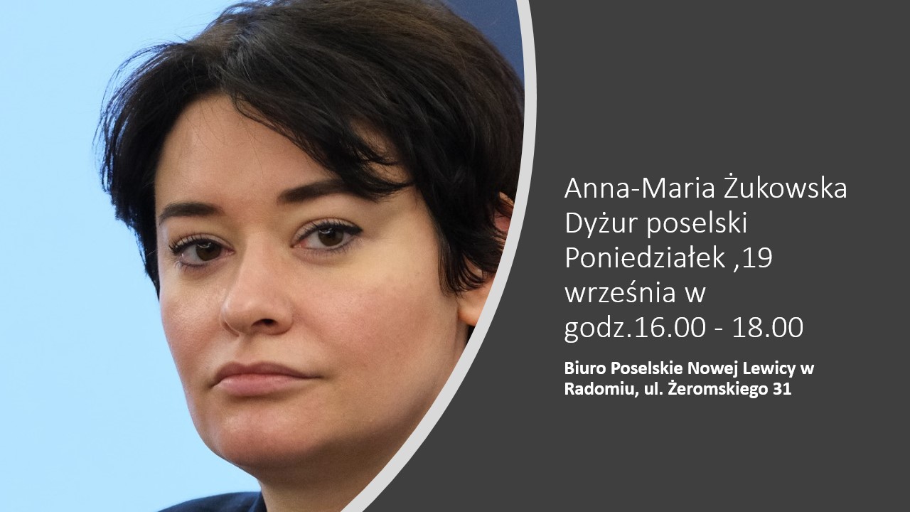Posłanka na Sejm RP Anna Maria Żukowska zaprasza na dyżur poselski, któ...